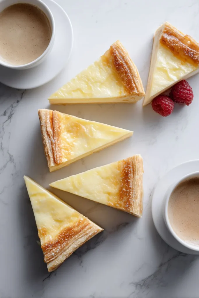 - Timing: Assemble the slices shortly before serving. If they sit for too long (over 6-8 hours), the moisture from the custard will eventually make the pastry soggy.