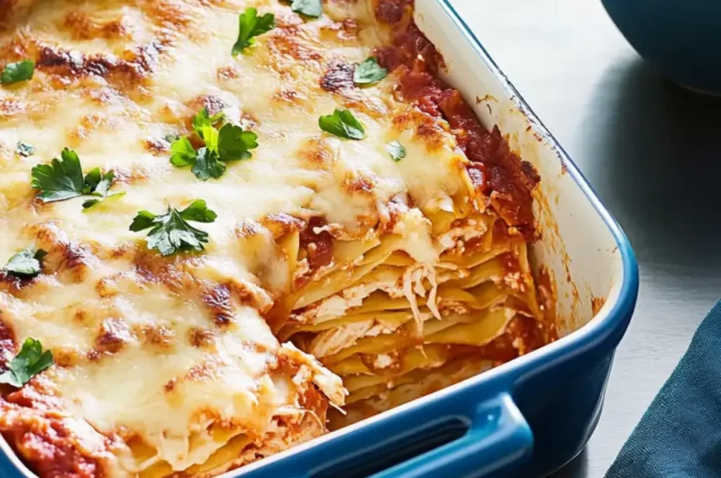 This easy chicken lasagna is creamy, cheesy, and full of flavor. It has layers of soft noodles, juicy chicken, rich tomato sauce, and a creamy ricotta filling. Perfect for a cozy family dinner!